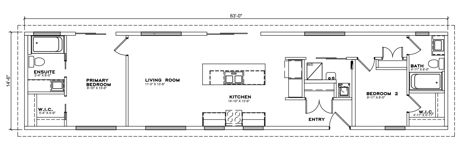 Area: 913 sq/ft - Bedroom: 2 - Bathroom: 2